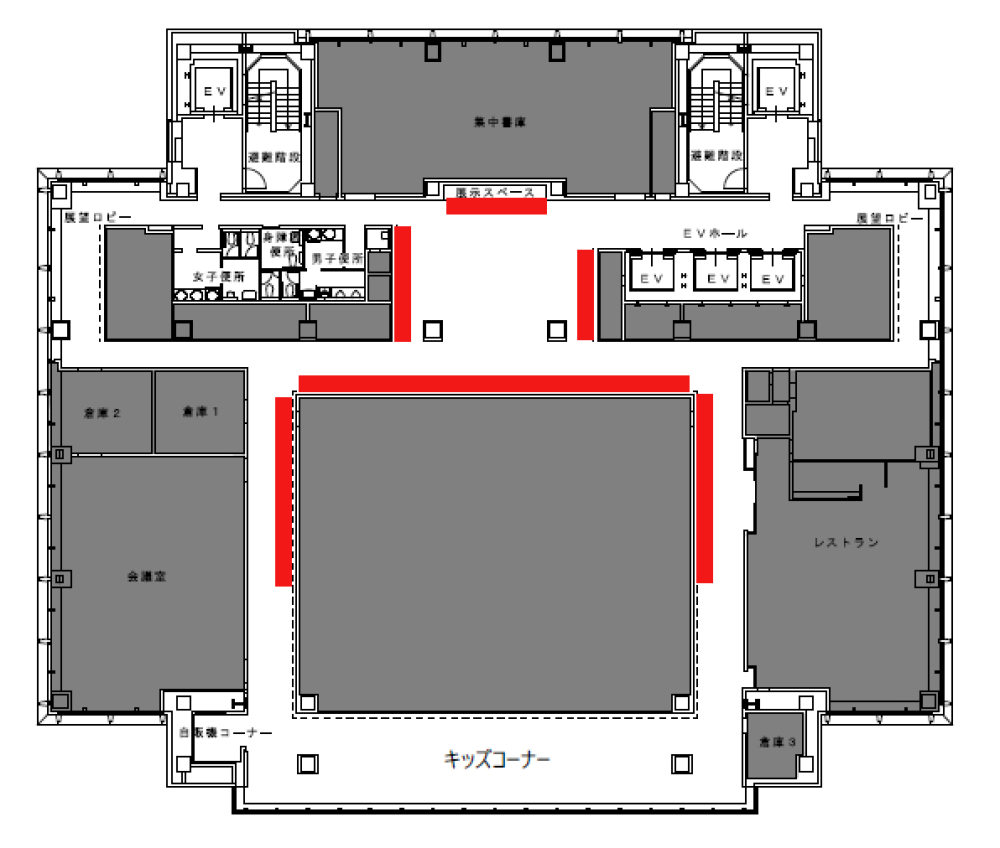 詳しくは「22階フロア図面(利用可能エリア)」のとおりです。