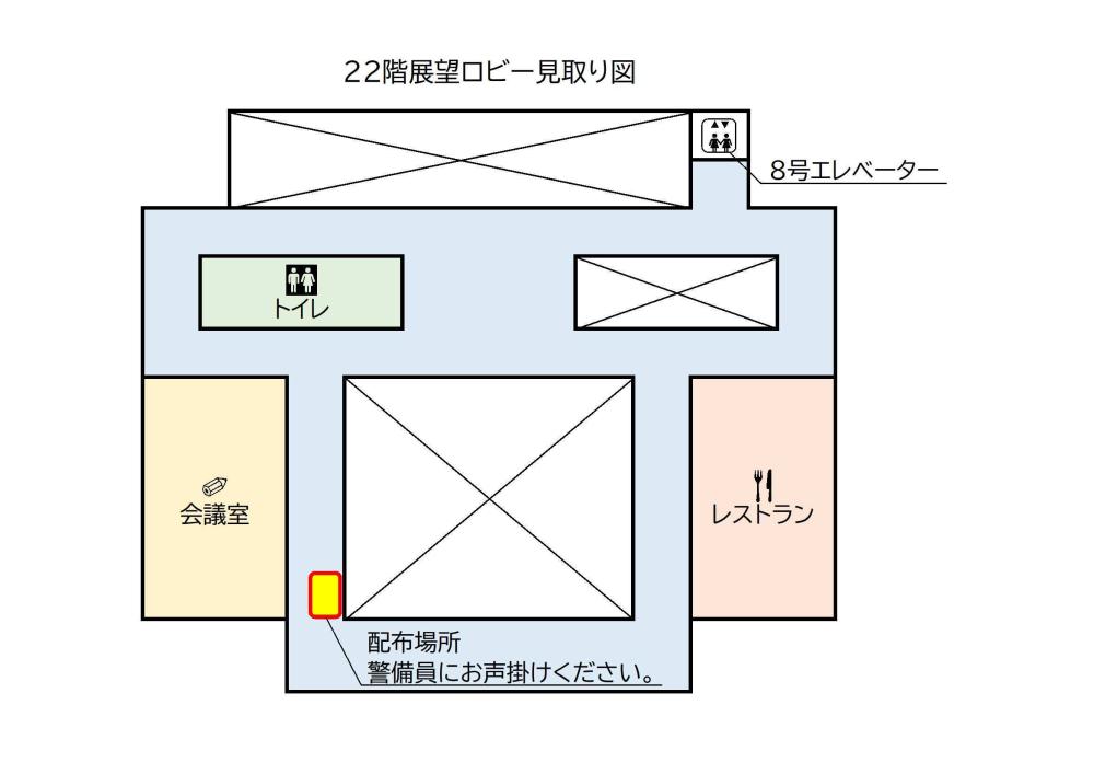 試験的に、22階展望ロビーでの配布を開始します(令和7年12月20日から令和8年3月29日までの土曜日、日曜日、祝日)。