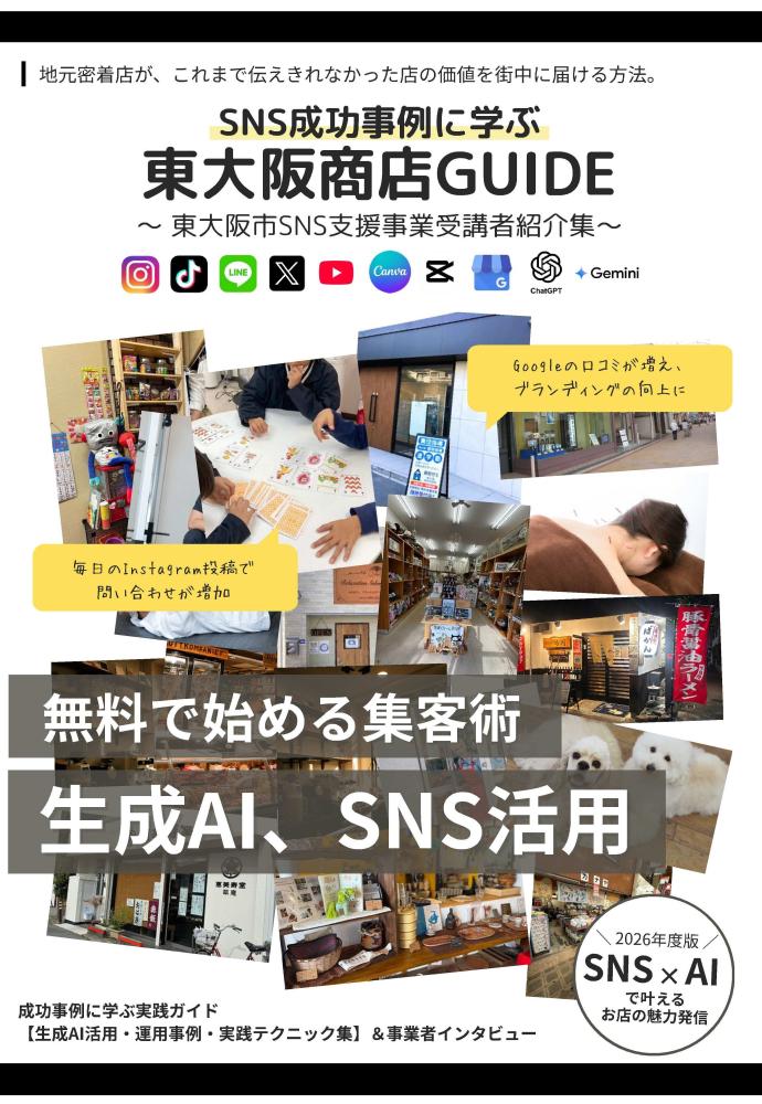 本事業の一環として作成した「東大阪SNS集客ガイドブック」を無料公開中です。SNSやGoogleビジネスプロフィール等の活用ノウハウを掲載していますので、ぜひご活用ください。