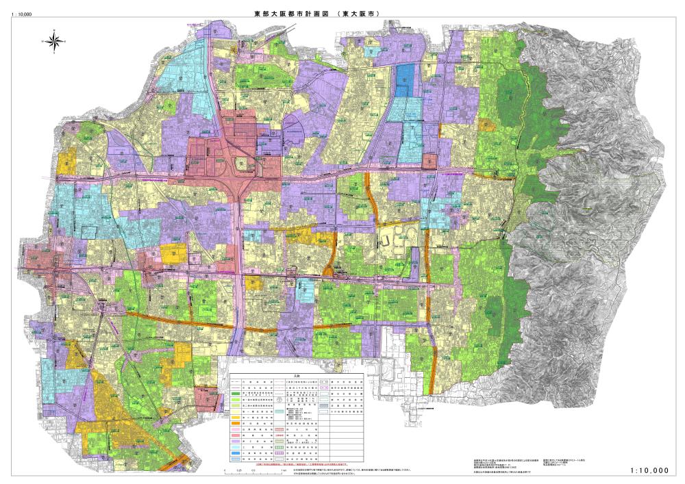 - 都市計画図は、「841mm×1189mm(A0サイズ)」、縮尺は「10,000分の1」です。