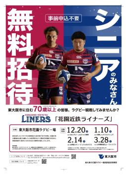 東大阪市花園ラグビー場高齢者招待事業として東大阪市在住の70歳以上の方を花園ラグビー場で開催されるスポーツイベントに無料招待します。