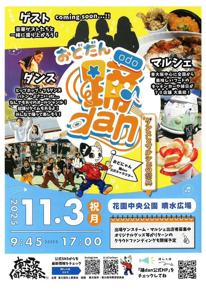 11月3日には花園中央公園噴水広場でダンスとマルシェの祭典「踊DAN」が開催されます。