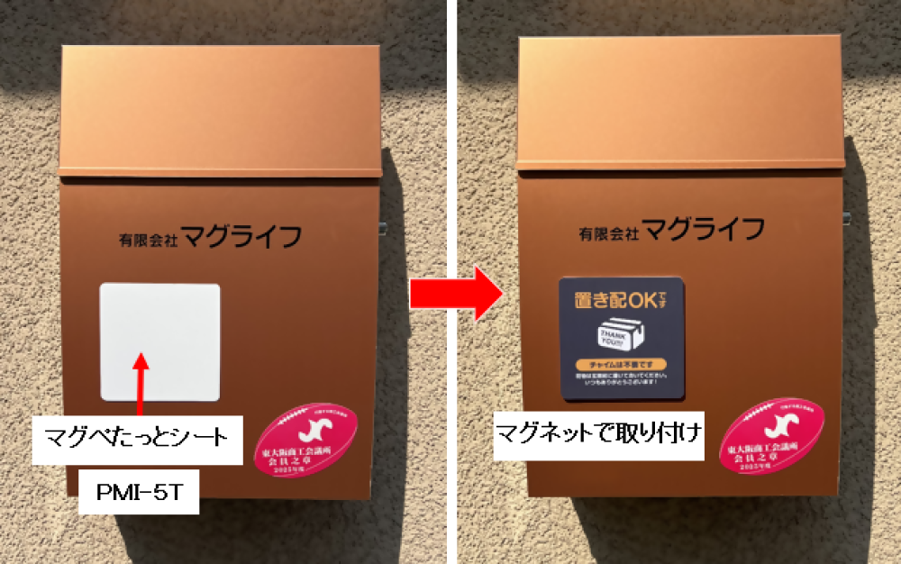 鉄粉シートに両面テープを付けた製品。カラーコーンや屋外看板など磁力が効かない場所でもステッカー等を簡単に着脱でき、衛生的に繰り返し使用可能。サビない仕様で小ロット対応。