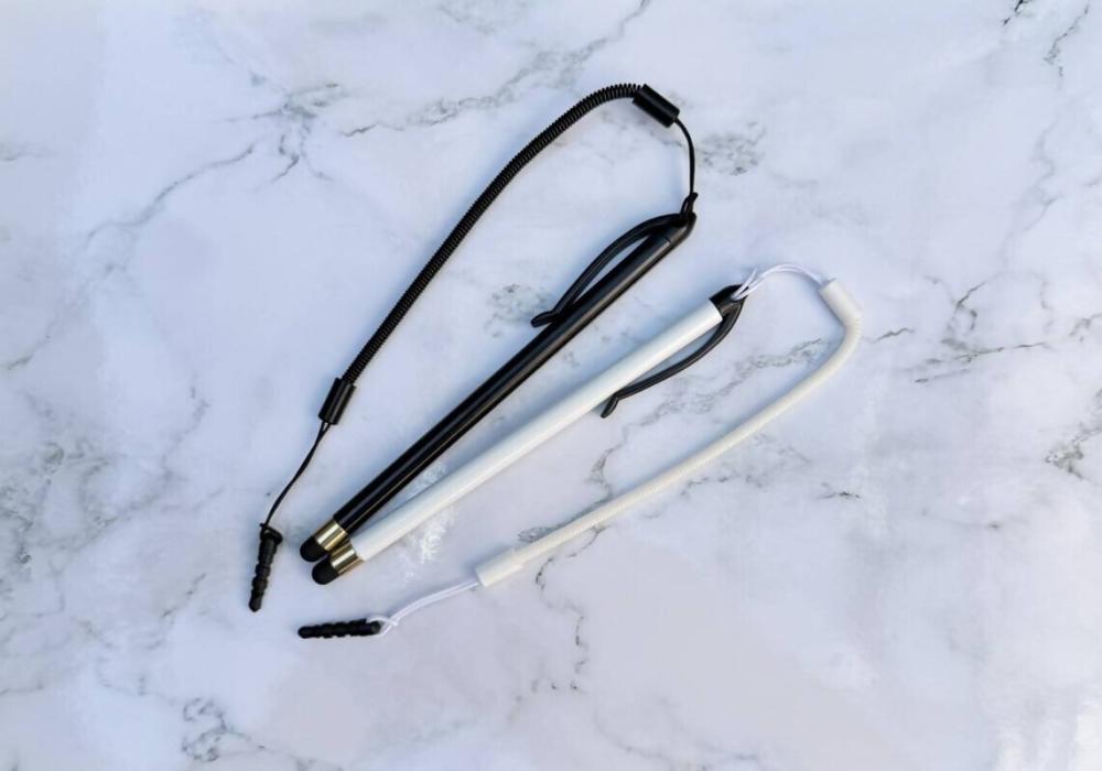 タブレットやゲーム機のタッチペン紛失防止用に開発。細い線径で余計なテンションがかからず、ソフトな使い心地を実現。高強度素材と独自のコイル技術で長期使用にも耐え、他社製品にはない細さが特長。