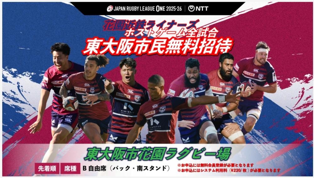 ジャパンラグビー リーグワン2025-26 花園近鉄ライナーズホストゲーム無料招待