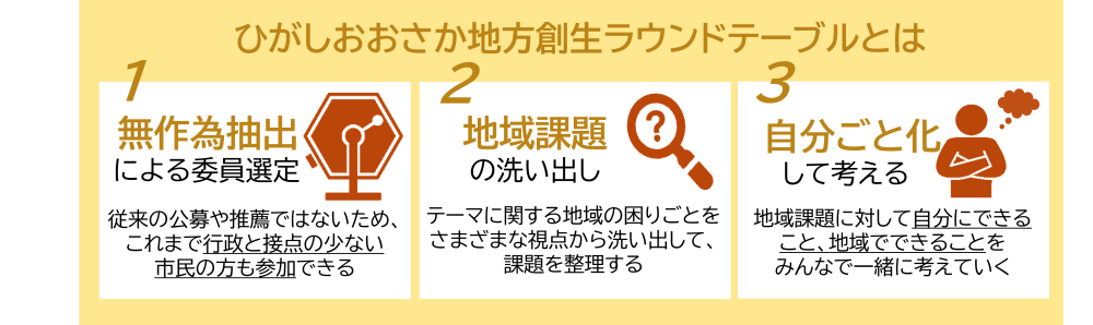 無作為抽出にて選ばれた市民の方々へ、「ひがしおおさか地方創生ラウンドテーブル」委員募集のご案内をお送りしております。