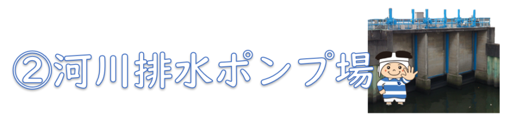 河川排水ポンプ場は、大きな川の水があふれそうなときに活やくします。