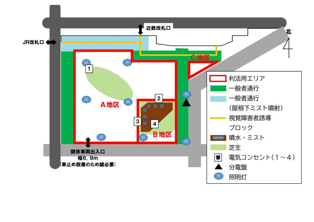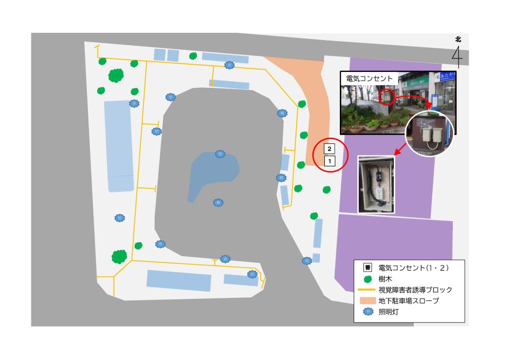 以下の駅前交通広場については、備え付けの電気コンセントを使用できます。ご利用には申し込みが必要です。