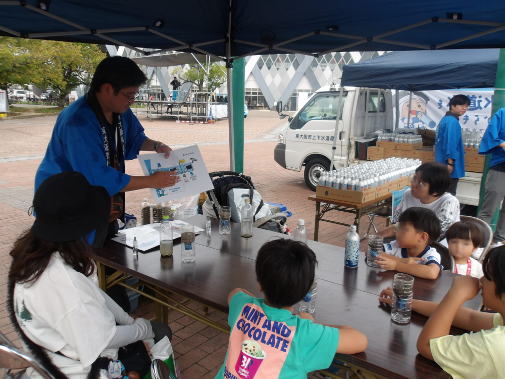 令和7年10月11日土曜日に東大阪市花園中央公園の噴水広場で開催された「環境啓発イベントECO東大阪」にて東大阪市上下水道局のブースを出展しました。