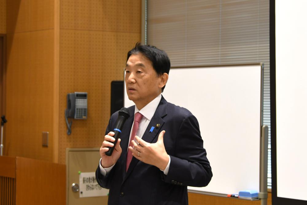 来場者のみなさまへ、野田義和市長が東大阪市の魅力や求める職員像についてお話しました。