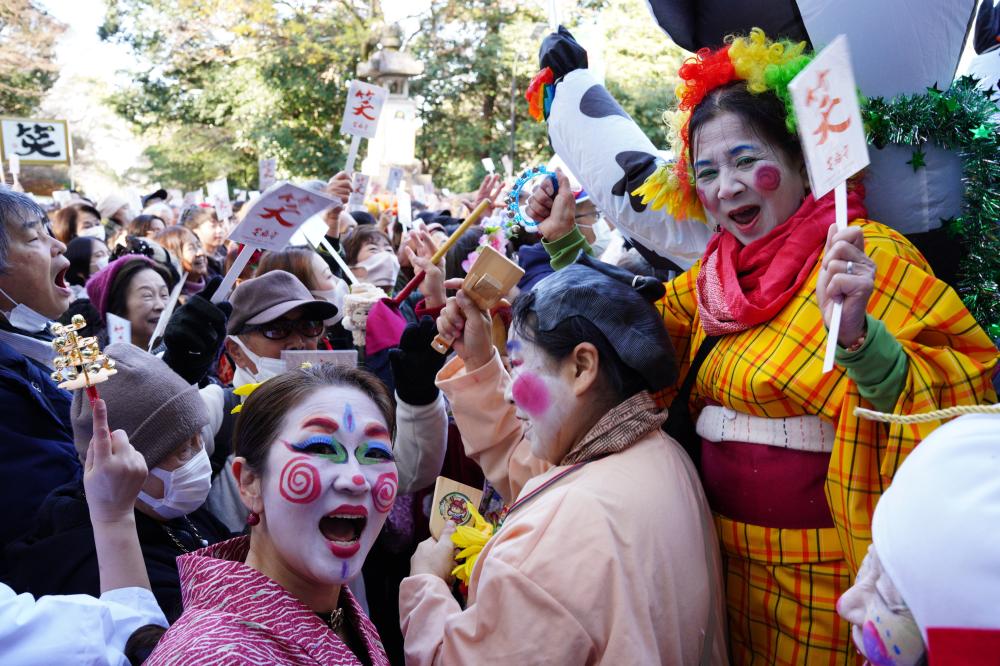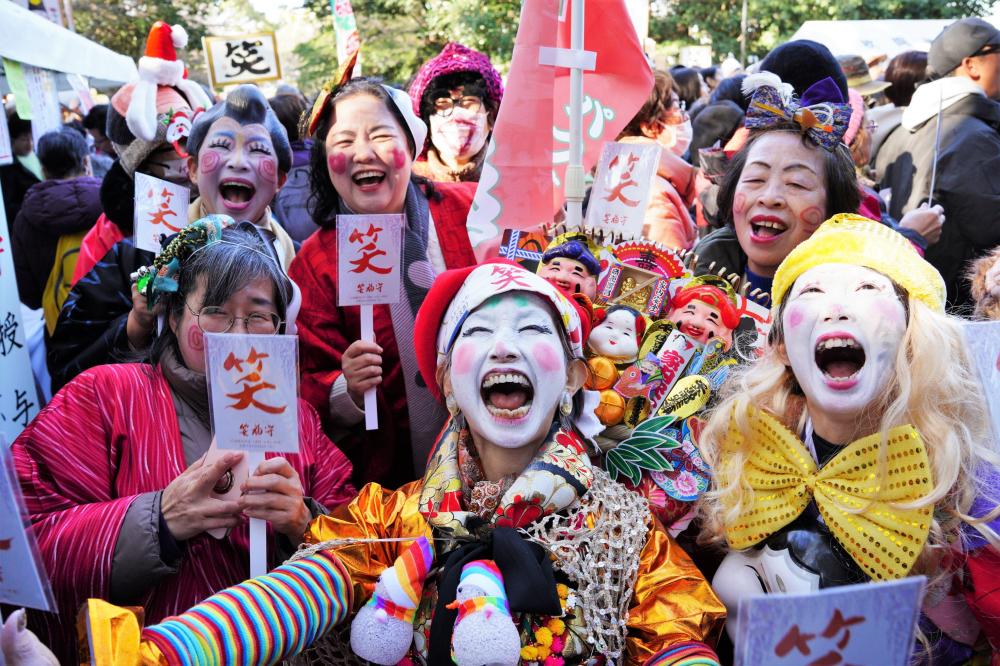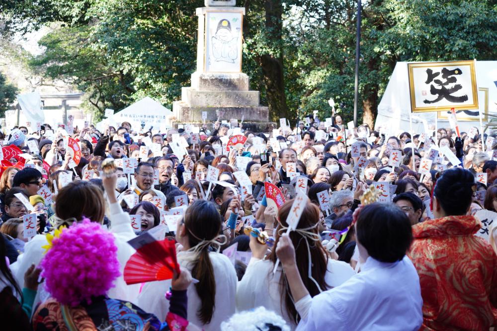 集まった約3500人の参拝者らは、宮司らと一斉に「あっはっはー」と、大きな声を出して20分間笑い続け、今年1年を締めくくるとともに、来年の幸運を祈願していました。