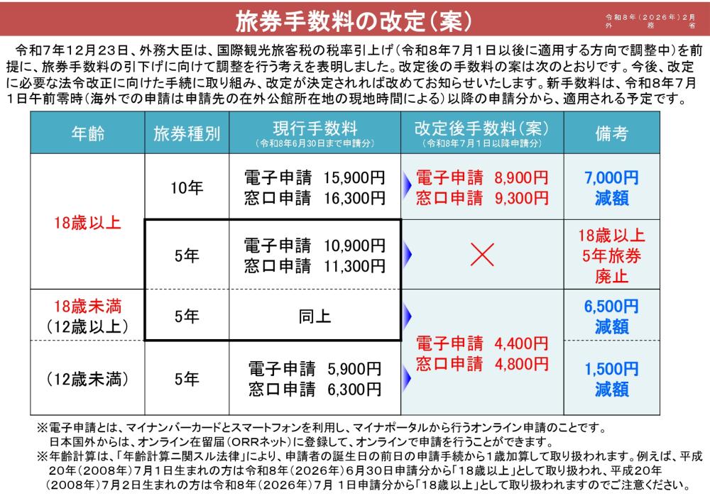 旅券手数料の引下げに向けた調整について、外務省より発表がありました。