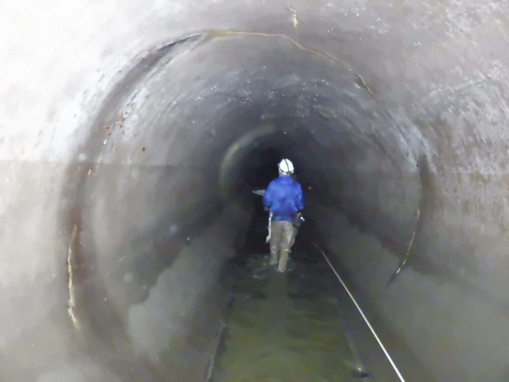 - 下水道管の中に調査員が入り、目視調査により腐食や破損の状態を把握します。