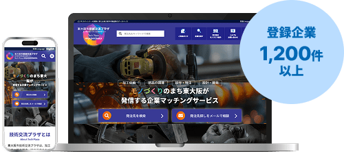 東大阪市が運営する「東大阪市 技術交流プラザ」では、モノづくりにおけるビジネスパートナーを求める企業と、登録企業数1,200件以上の東大阪のモノづくり企業とのマッチングサービスを提供しています。